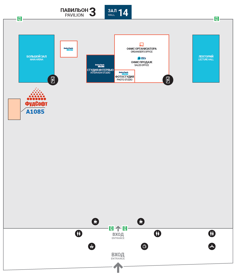 Стенд расположен непосредственно рядом с Большим залом (план расположения). Получить билет для бесплатного входа на выставку можно по ссылке, используя промокод FOODSOFT.