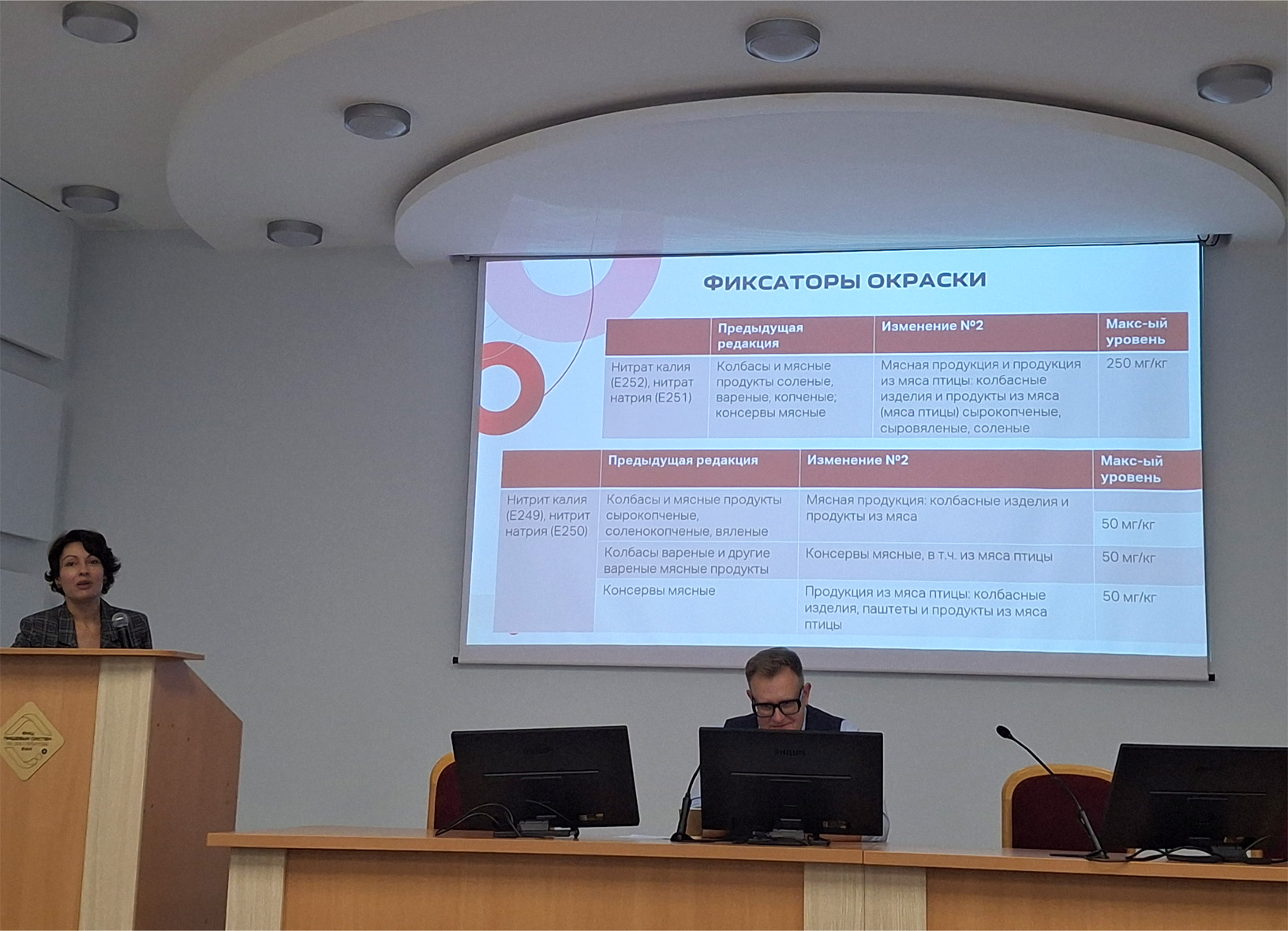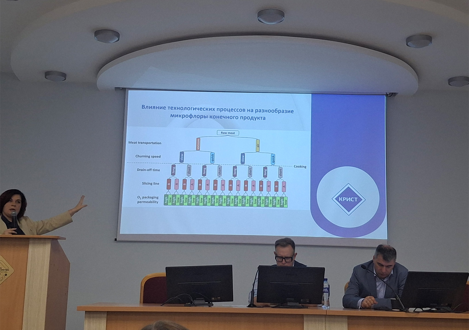 В ходе выступления также было подробно рассказано об оптимизации и моделировании рецептур с помощью уникального функционала программного комплекса «МультиМит Эксперт» и «МультиМилк Эксперт» и продемонстрирована эффективность использования ПК «МультиМит Эксперт» на примере оптимизации рецептуры вареной колбасы, обогащенной кальцием и йодом. В результате использования данного программного комплекса стало возможным улучшить в рецептуре колбасы соотношение кальция и фосфора, приблизить его к заданному оптимальному значению 1:1, что способствовало повышению биологической ценности продукта, а также увеличить коэффициент водоудержания фарша (уникальная функция программы по его определению), характеризующий влагоудерживающую способность фарша и, как следствие, улучшить его структурно-механические характеристики. Кроме того удалось увеличить значение показателя энергетической ценности продукта на 14,5% и привести его к заданным требованиям. При этом рентабельность продукции увеличилась на 10,34%.
