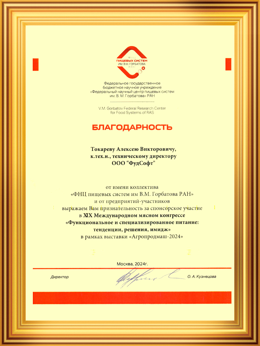 Выражаем благодарность организаторам за высокую организацию выставки и насыщенную деловую программу. Подобные мероприятия позволяют нам глубже понимать потребности производителей и эффективнее выстраивать сотрудничество с компаниями пищевой отрасли как внутри России, так и за её пределами.